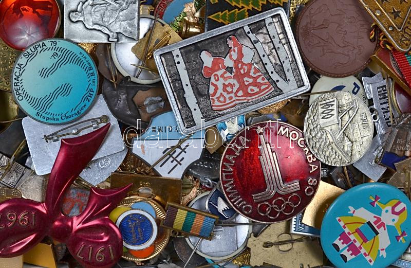 Több mint 200db-ból álló kitűző és jelvény tétel dobozban T:vegyes