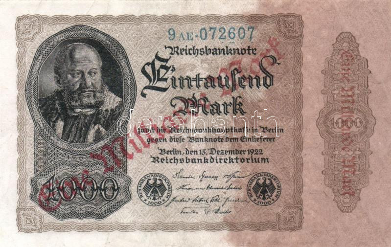 Német Birodalom / Weimari Köztársaság 1922. 1000M (2x) piros "Eine Mil... https://www.darabanth.com/en/190-Online-auction/190.0/Numismatics/Foreign-banknotes~600011/Nemet-Birodalom-Weimari-Koztarsasag-1922-1000M-2x-piros-Eine-Milliard-Mark-fny-sal-klf~II712956