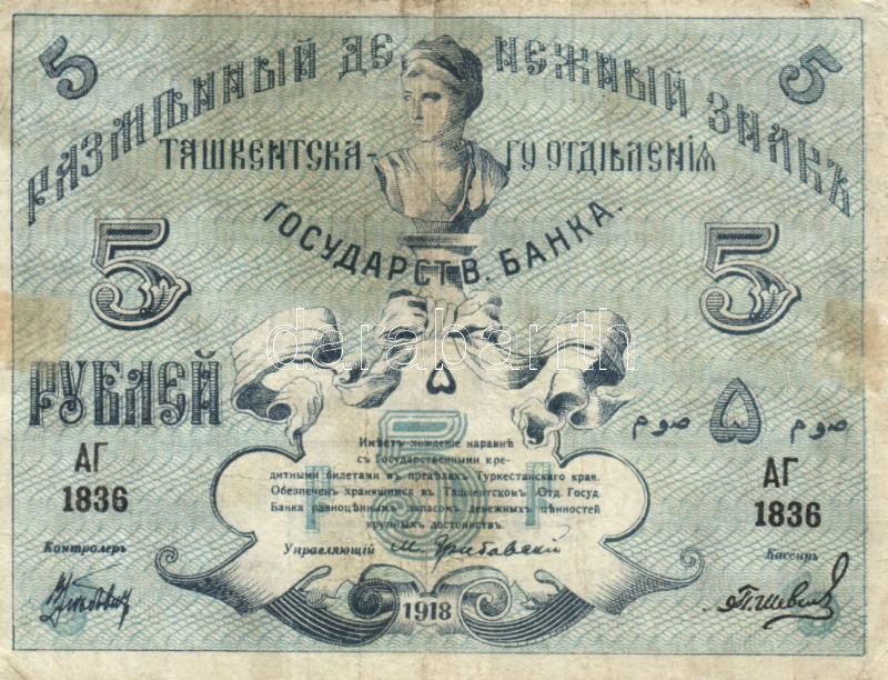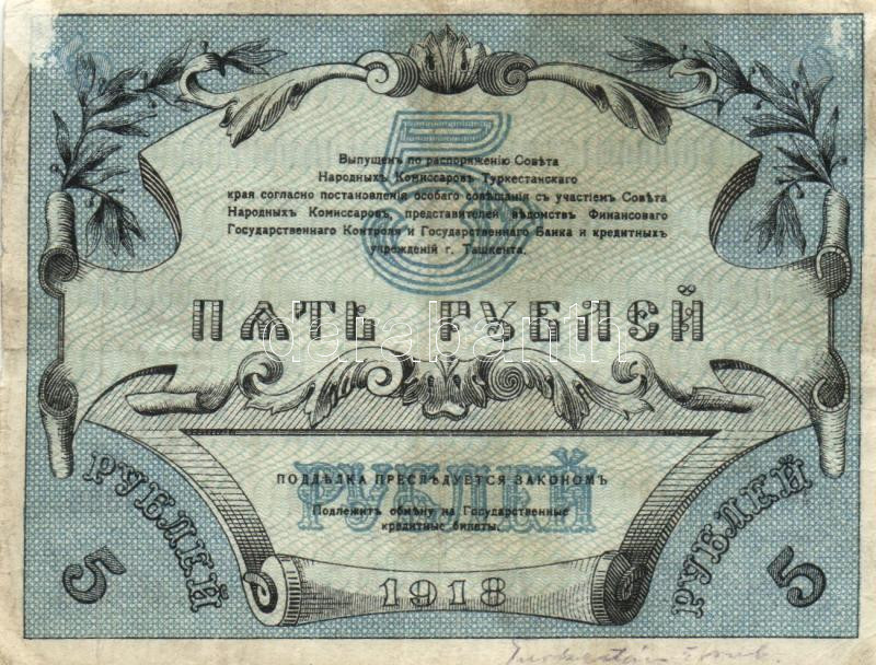 Oroszország / Szocialista Szövetségi Szovjet Köztársaság 1918. 5R + 19... https://www.darabanth.com/en/190-Online-auction/190.0/Numismatics/Foreign-banknotes~600011/Oroszorszag-Szocialista-Szovetsegi-Szovjet-Koztarsasag-1918-5R-plus-1920-1R-TIII-3Cbr3ERussia~II713493