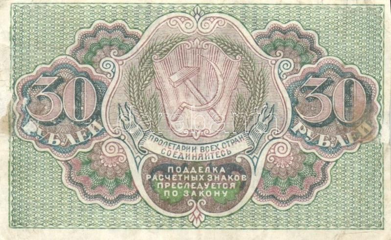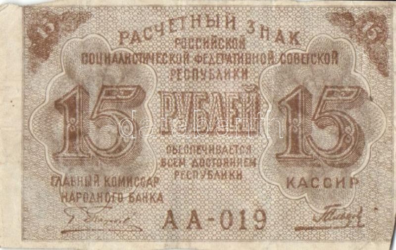 Oroszország / Szocialista Szövetségi Szovjet Köztársaság 1919. 15R + 3... https://www.darabanth.com/en/190-Online-auction/190.0/Numismatics/Foreign-banknotes~600011/Oroszorszag-Szocialista-Szovetsegi-Szovjet-Koztarsasag-1919-15R-plus-30R-plus-60R-TIII-3Cbr3ERuss~II712851