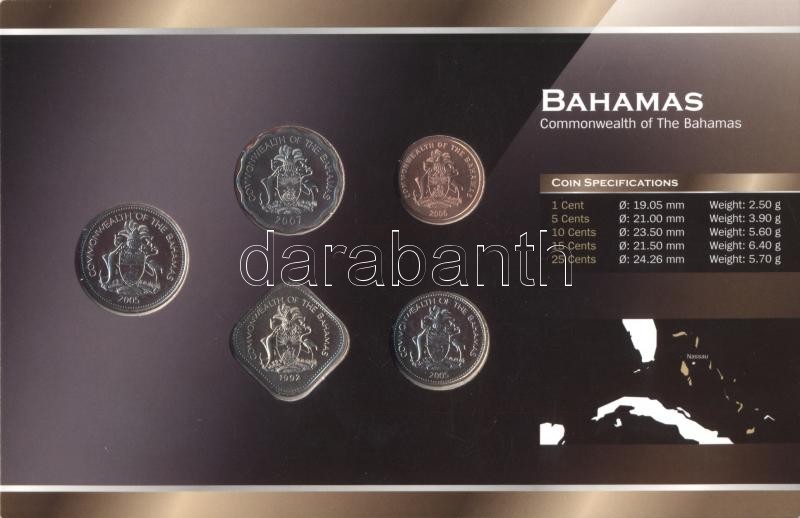 Bahamák 1992-2007. 1c - 25c, 5klf fémpénz "World Money" T:1