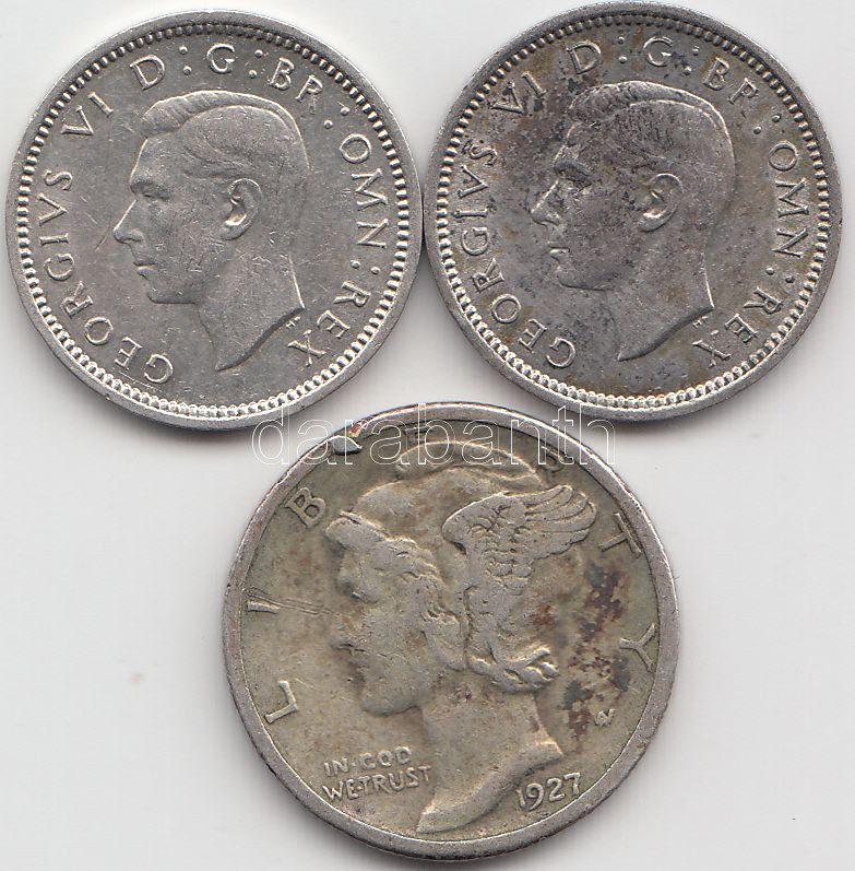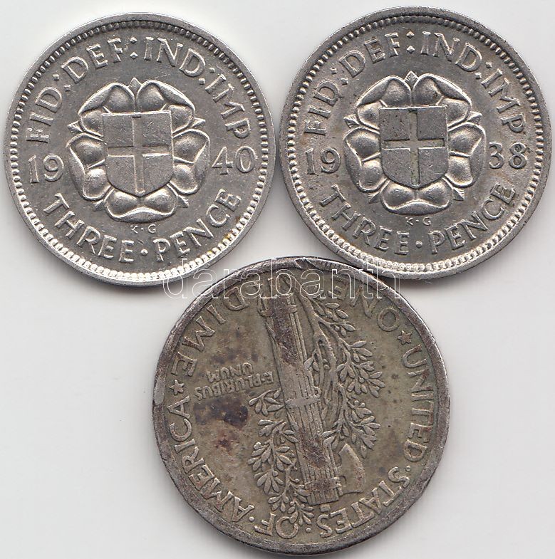 Nagy-Britannia 1938-1940. 3p Ag "VI. György" (2x) + Amerikai Egyesül Á... https://www.darabanth.com/en/190-Online-auction/190.0/Numismatics/Foreign-coins~600012/Nagy-Britannia-1938-1940-3p-Ag-VI-Gyorgy-2x-plus-Amerikai-Egyesul-Allamok-1927-1d-Ag-Mercury~II714916