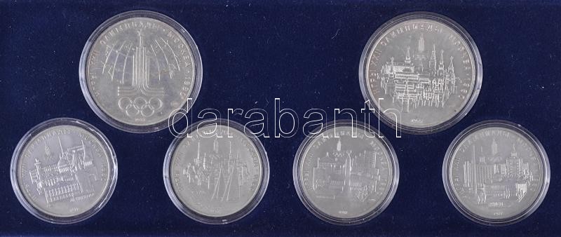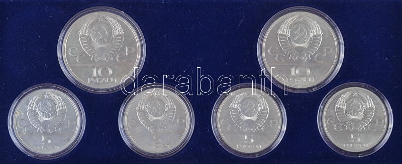 Description: Szovjetunió 1977. 5R Ag "Olimpia" (4x) + 10R Ag "Olimpia" (2x) mind klf motívummal T:1 eredeti műanyag tokban