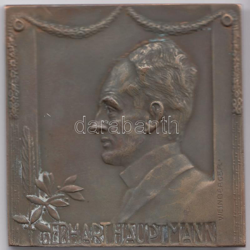 Németország 1912. "Gerhart Hauptmann születésénék 50. évfordulója" Br plakett. Szign.: Weinberger (49.5x50mm/77.9g) T:2-