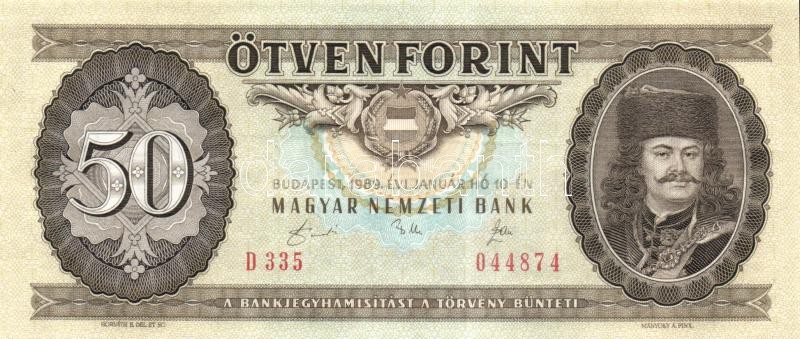 1989. 50Ft (5x) egymás utáni sorszámmal és nyomdai papírránccal T:I