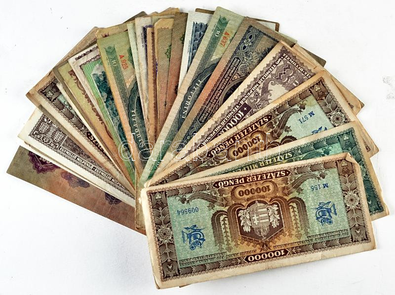 60db vegyes bankjegy, pengők és forintok papírdobozban és bőrtokban T:...