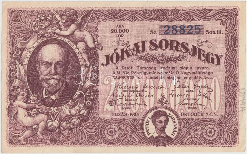 https://www.darabanth.com/en/190-Online-auction/190.0/Numismatics/Hungarian-and-foreign-emergency-notes-and-coins-tokens~600006/1925-Jokai-sorsjegy-20000K-TII~II717788