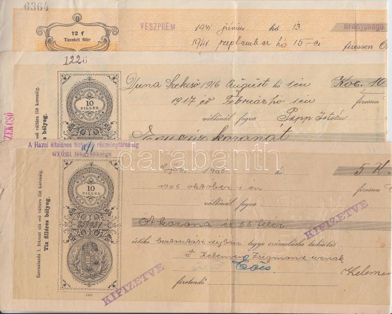 Győr 1905. 5k 55f + Dunaszekcső 1916. 100K + Budapest 1941. 2200P értékű váltó T:III