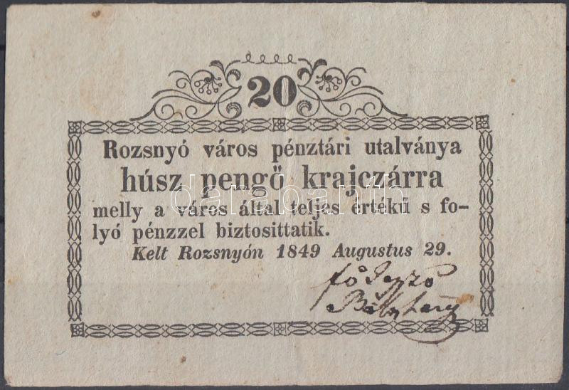 https://www.darabanth.com/en/190-Online-auction/190.0/Numismatics/Hungarian-and-foreign-emergency-notes-and-coins-tokens~600006/Rozsnyo-1849-20kr-TII-~II712654