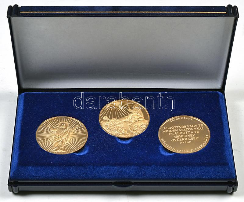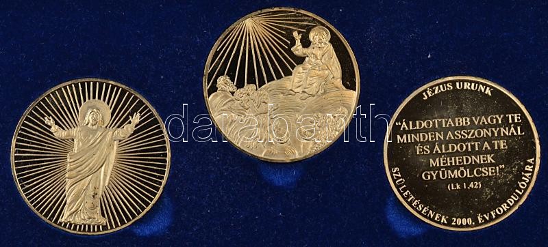 2000. "Jézus Urunk születésének 2000. Évfordulója Emlékérem" aranyozott sorozatának 3db-os teljes kiadványa dísztokban és sorszámozott (47.) tanúsítvánnyal T:PP felületi karcos (5000db)