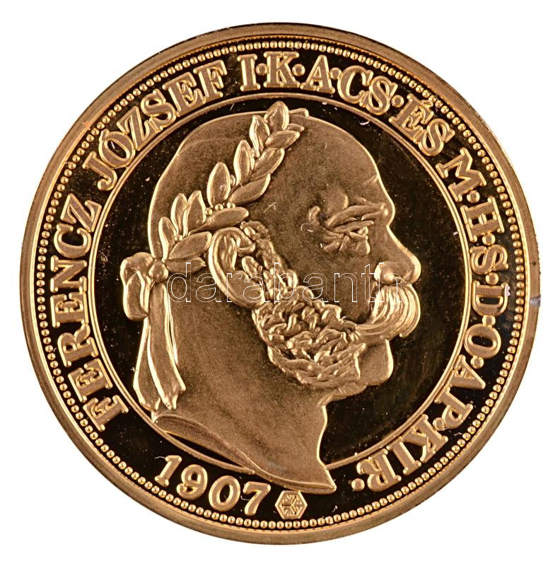 "Magyar aranypénzek utánveretben - Ferenc József jubileumi 100 korona" aranyozott Ag(0.999) emlékérem (5.5g) T:exPP(ph.) csak 2009db!