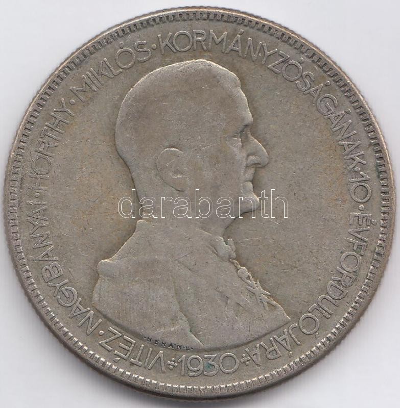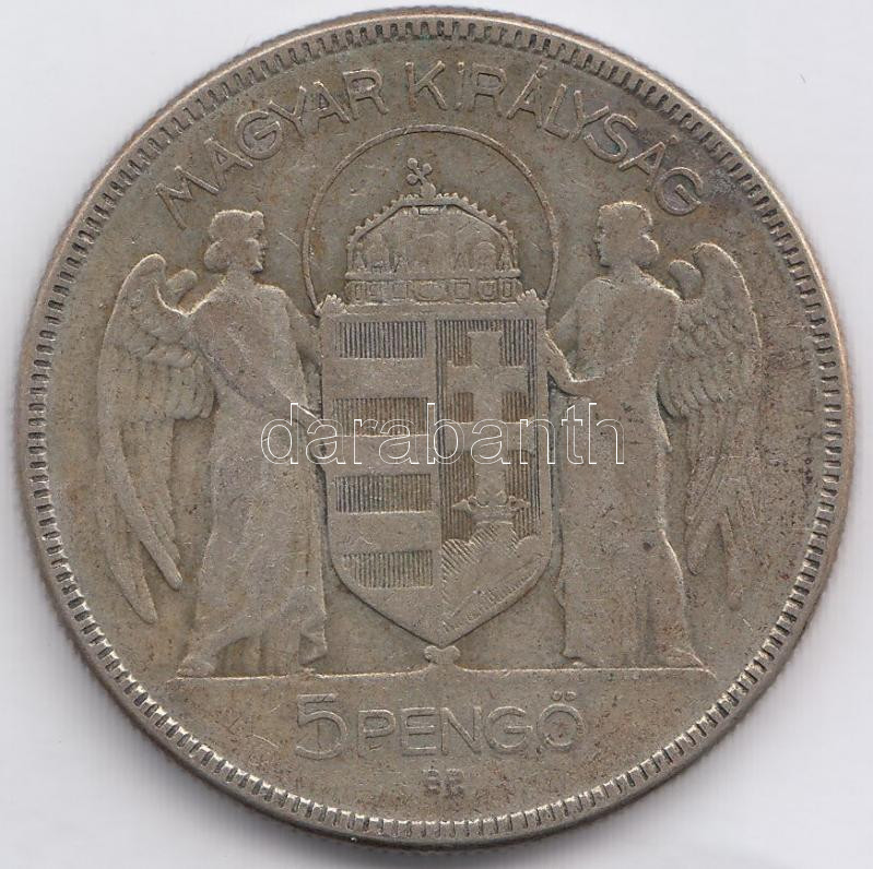https://www.darabanth.com/en/190-Online-auction/190.0/Numismatics/Hungarian-metal-and-silver-coins~600008/1930-5P-Ag-Horthy-jobbra-T3~II711003