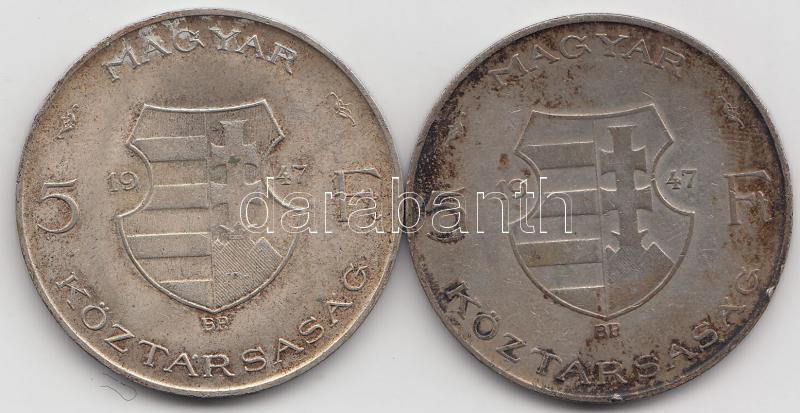 1947. 5Ft Ag "Kossuth" (2x) T:2-,3