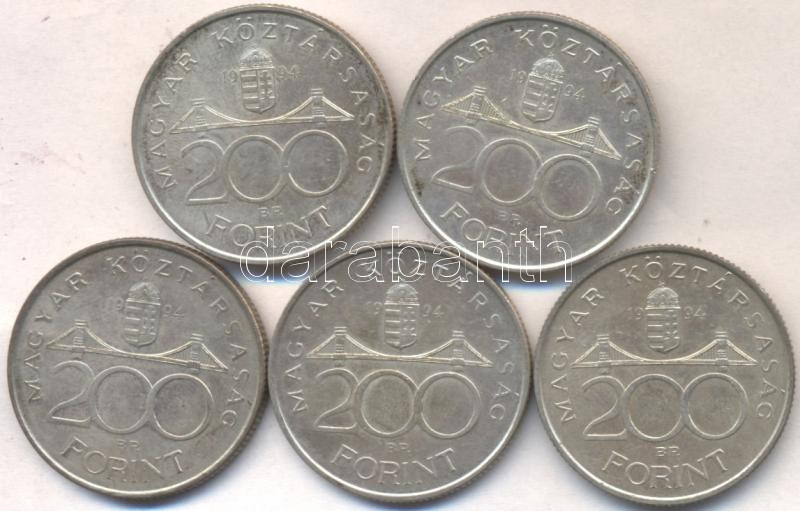 https://www.darabanth.com/en/190-Online-auction/190.0/Numismatics/Hungarian-metal-and-silver-coins~600008/1994-200Ft-Ag-Deak-5x-T2~II713417