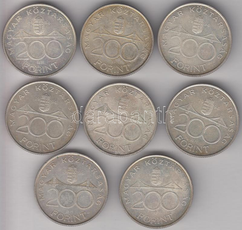 https://www.darabanth.com/en/190-Online-auction/190.0/Numismatics/Hungarian-metal-and-silver-coins~600008/1994-200Ft-Ag-Deak-8x-T2~II715239