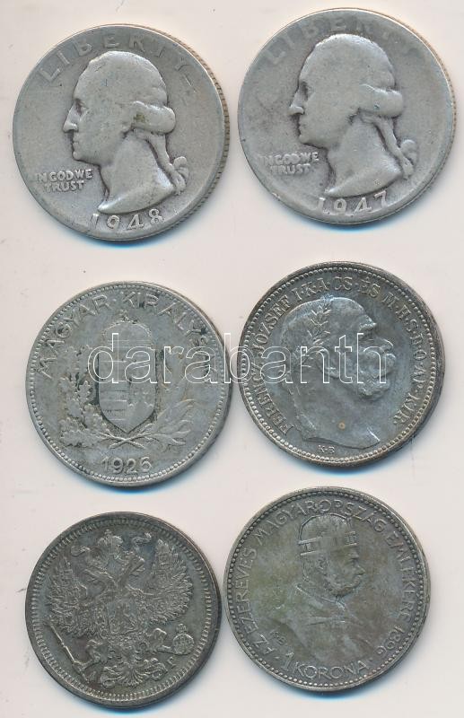 5db klf ezüst magyar és külföldi pénz T:vegyes