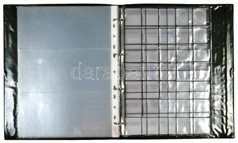Műbőr borítású gyűrűs album 15db bankjegytartó és 3db éremtartó berakó...