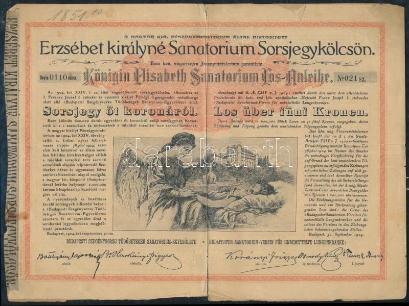 https://www.darabanth.com/en/190-Online-auction/190.0/Numismatics/Shares-and-Tickets~600005/Budapest-1904-Erzsebet-kiralyne-Sanatorium-Sorsjegykolcson-sorsjegye-5K-rol-2x-TIII~II675703