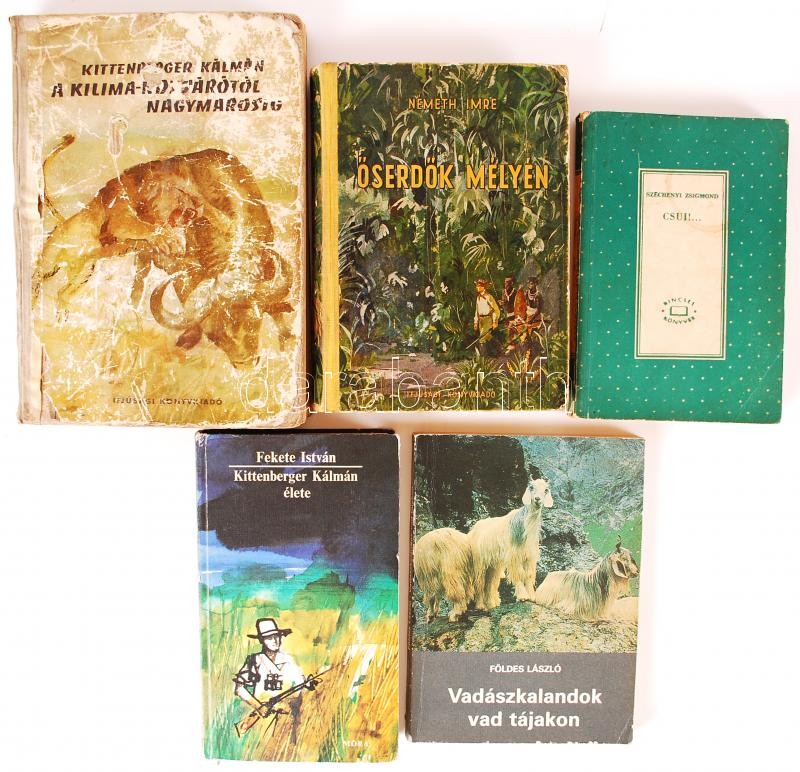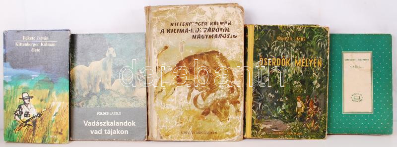 Description: Vadászkönyvtétel: Kittenberger Kálmán: A Kilima-ndzsárótól Nagymarosig; Széchenyi Zsigmond: Csui...!; Fekete István: Kittenberger Kálmán élete; Németh Imre: Őserdők mélyén; Földes László: Vadászkalandok vad tájakon