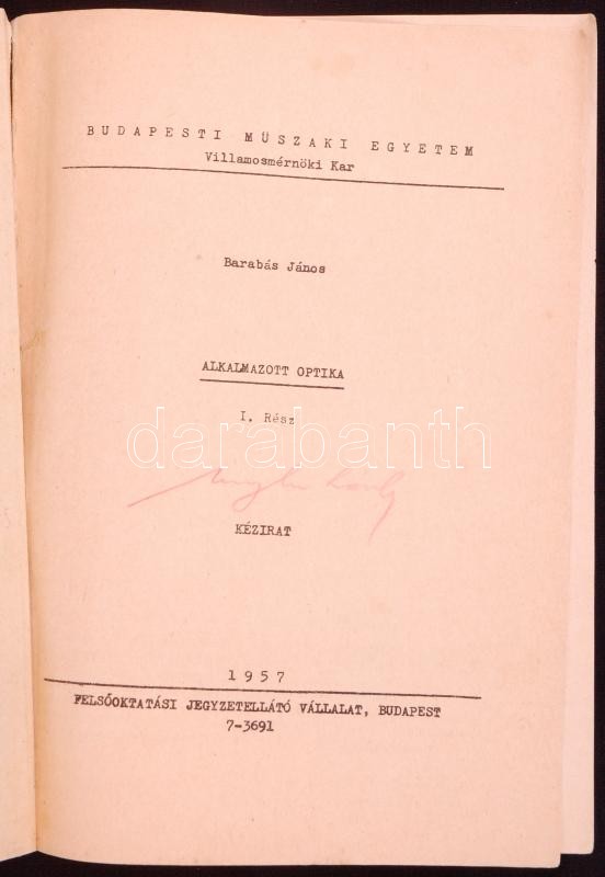 Barabás János: Alkalmazott optika I.rész. Kézirat. Budapesti Műszaki E... https://www.darabanth.com/en/190-Online-auction/190.0/Other-collectibles/Books-Science~800019/Barabas-Janos-Alkalmazott-optika-Iresz-Kezirat-Budapesti-Muszaki-Egyetem-Villamosmernoki-~II701214