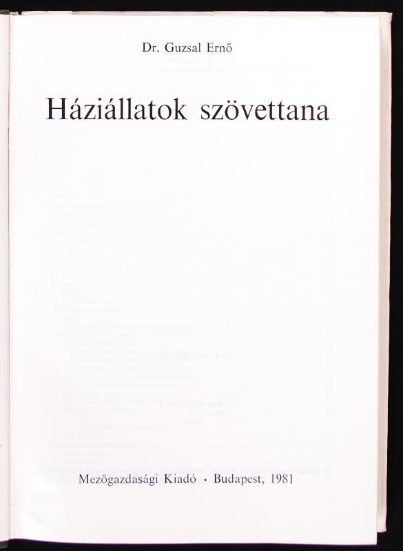 Dr. Guzsal Ernő: Háziállatok szövettana. Bp., 1981, Mezőgazdasági Kiad...