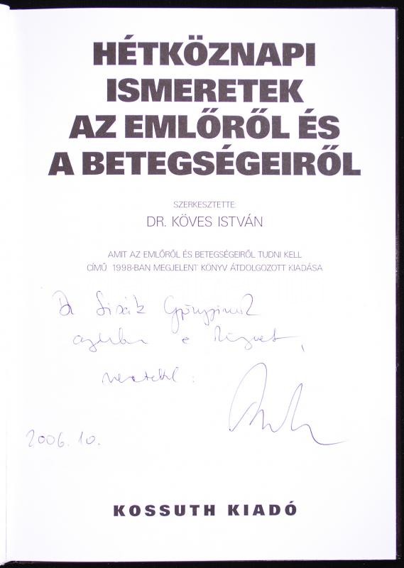 https://www.darabanth.com/en/190-Online-auction/190.0/Other-collectibles/Books-Science~800019/Dr-Koves-Istvan-Hetkoznapi-ismeretek-az-emlorol-Budapest-2003-Kossuth-Kiado-Dedikalt--3C~II712878