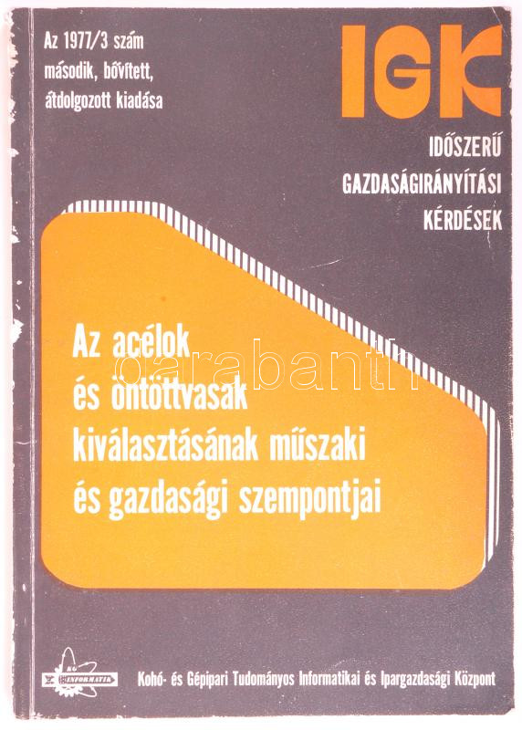 Dr. Szombatfalvy Árpád:Az acélok és öntöttvasak kiválasztásának műszak... https://www.darabanth.com/en/190-Online-auction/190.0/Other-collectibles/Books-Science~800019/Dr-Szombatfalvy-ArpadAz-acelok-es-ontottvasak-kivalasztasanak-muszaki-es-gazdasagi-sze~II701207