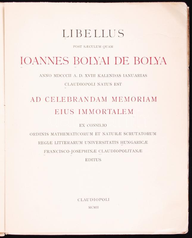 Libellus post saeculum quam Ioannes Bolyai de Bolya... ad celebrandam ... https://www.darabanth.com/en/190-Online-auction/190.0/Other-collectibles/Books-Science~800019/Libellus-post-saeculum-quam-Ioannes-Bolyai-de-Bolya-ad-celebrandam-memoriam-eius-immortalem-Cl~II712914