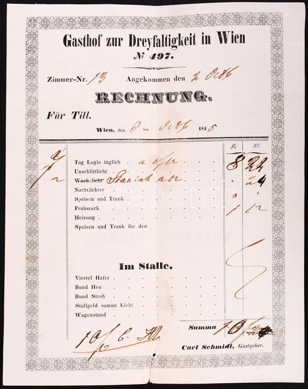 1845 Bécs vendéglői számla / Vienna restaurant invoice