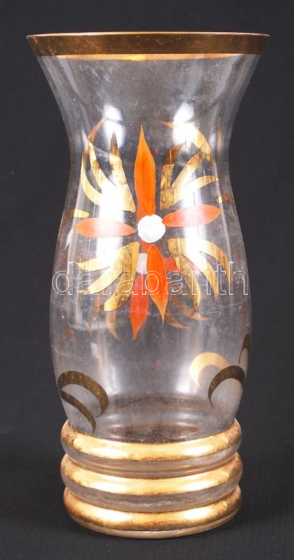 Festett, aranyozott üveg váza / Vase 28 cm