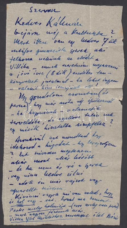 cca 1960 Ferenczy Béni saját kézzel írt személyes hangú levele Kedves ...