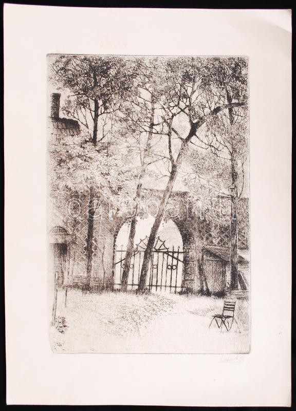 Olejnik jelzéssel: Kert. Rézkarc, papír, 38x27cm