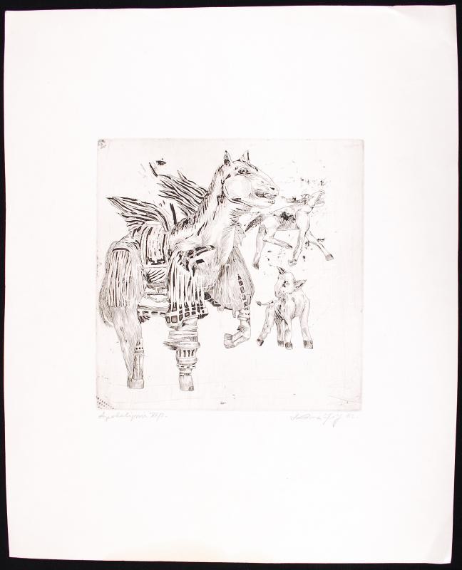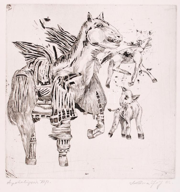 Olvashatatlan jelzéssel: Apokalipszis. Rézkarc XX/2, papír, 20×20 cm