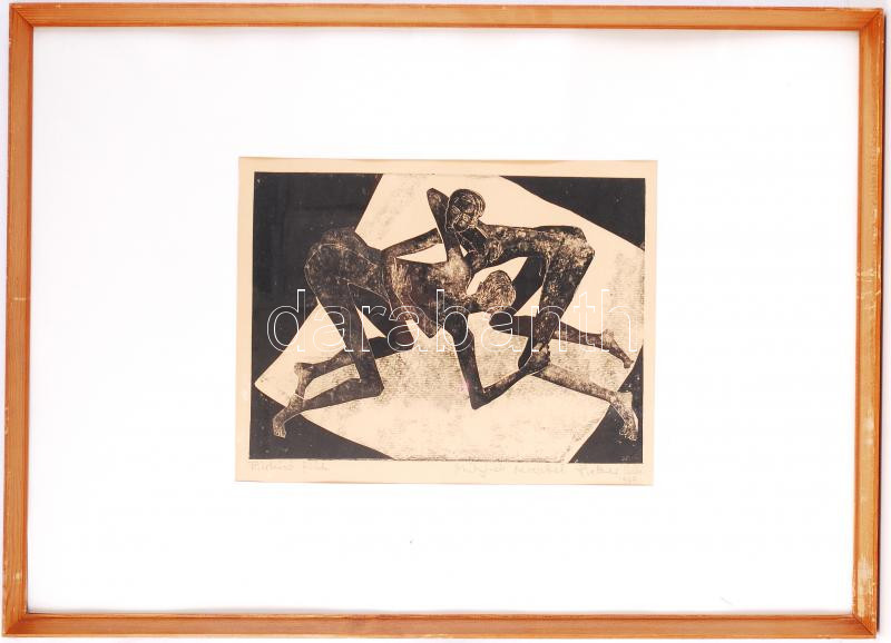 Stettner Béla (1928 - 1984): Birkózó fiúk. Monotípia, papír, jelzett, ...