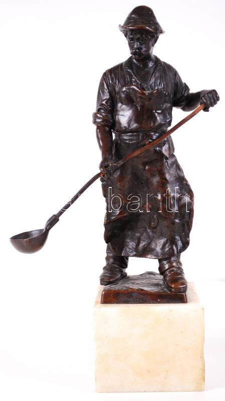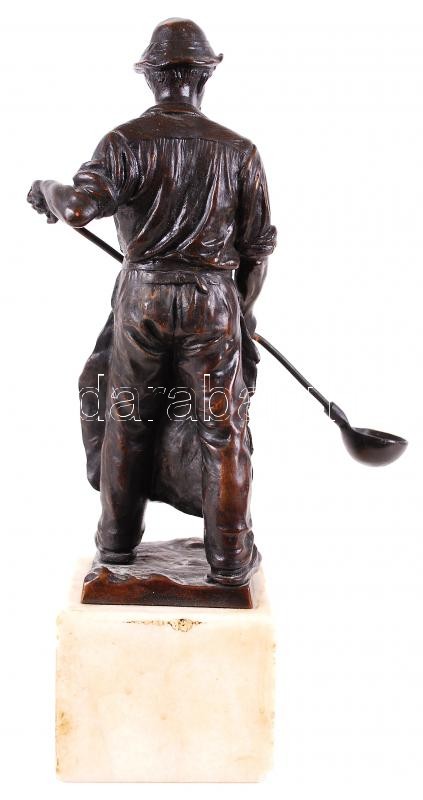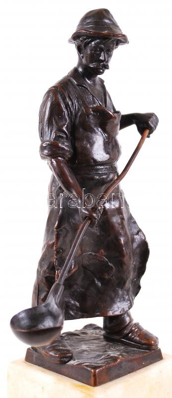 Öntödei munkás. Bronzírózott spiáter, jelzés nélkül, alabástrom talapz...