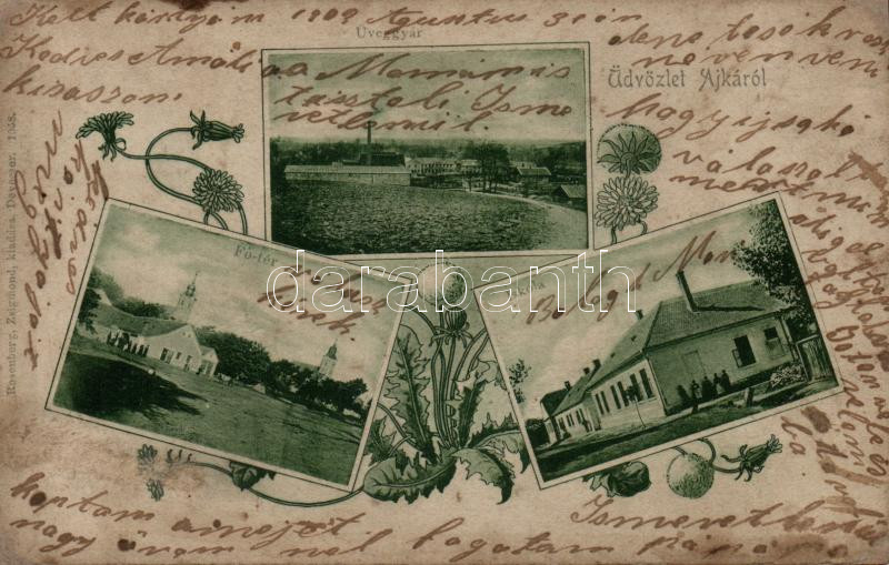 Ajka Fő tér, üveggyár, iskola, Art Nouveau (b)