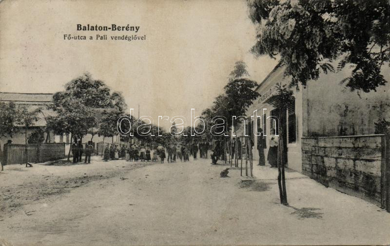 Balatonberény Fő utca, Páli vendéglő, templom (EK)