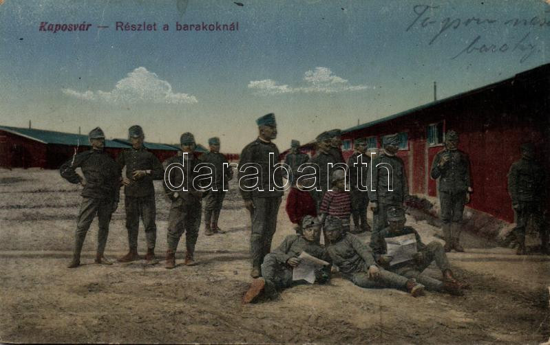 Kaposvár barakk katonákkal (fa)