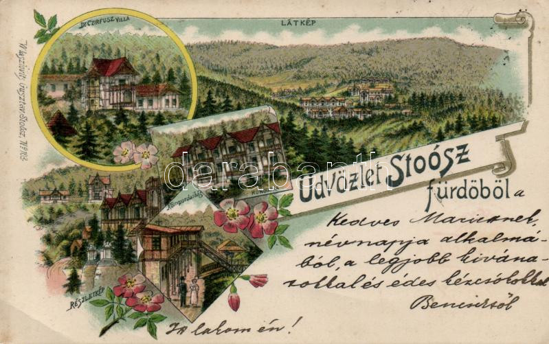 Stószfürdő, Dr. Czirfusz villa, Komporday ház / villas, floral, litho ...
