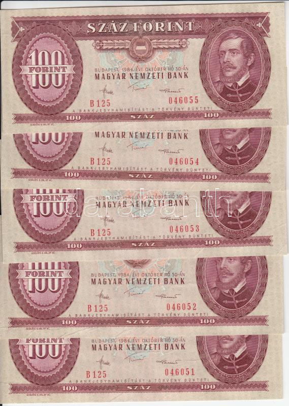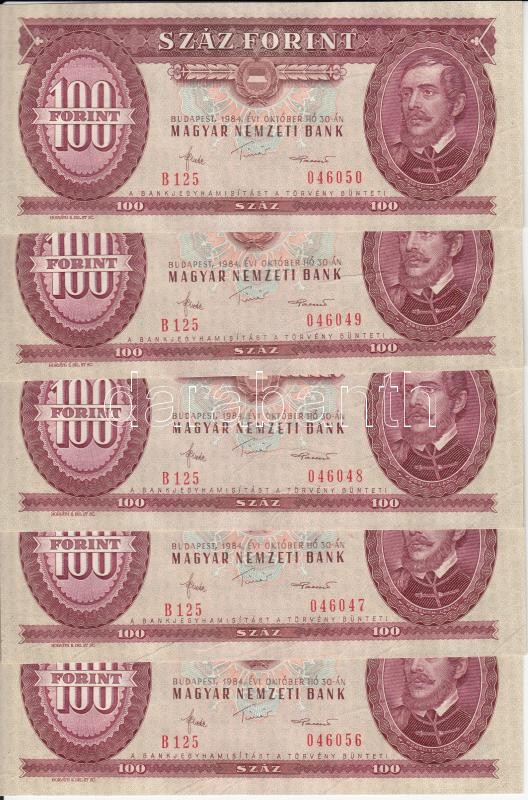 1984. 100Ft (10x) egymás utáni sorszámmal, nyomdai papírránccal T:I