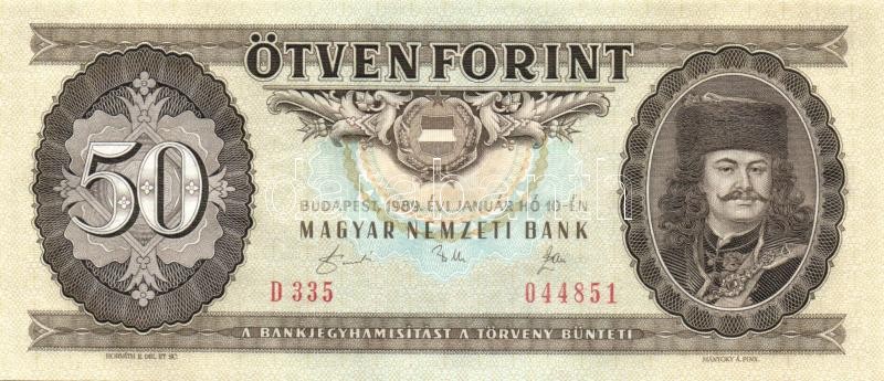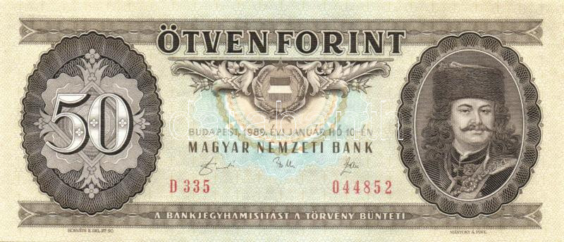 1989. 50Ft (2x) egymás utáni sorszámmal és nyomdai papírránccal T:I