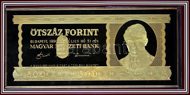1990. 500Ft bankjegyveret aranyozott Ag (217,73g/7 uncia/0.999/154x70m...