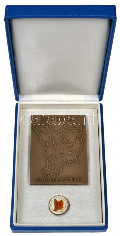 ~1980. "Tanácsi Munkáért" Br emlékplakett + "Tanácsi Munkáért Szolnok M. 10 év" zománcozott jelvény dísztokban T:2