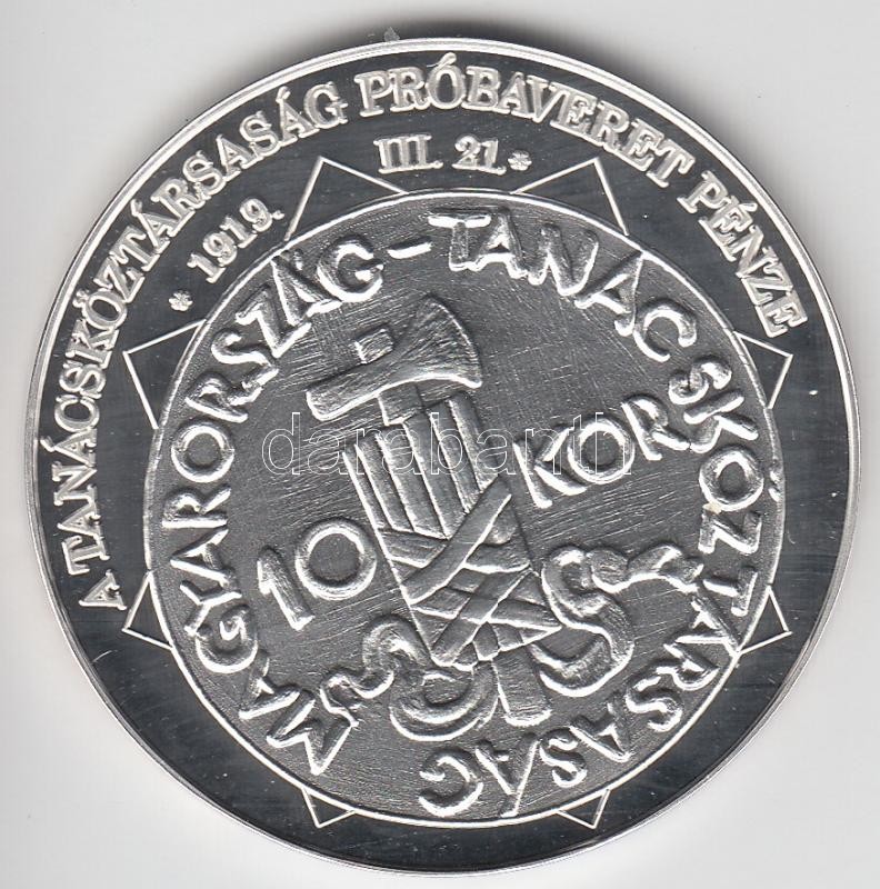 DN "A magyar nemzet pénzérméi - A Tanácsköztársaság próbaveret pénze 1919.III.21." Ag (0,999) emlékérem (10,37g/35mm) T:PP