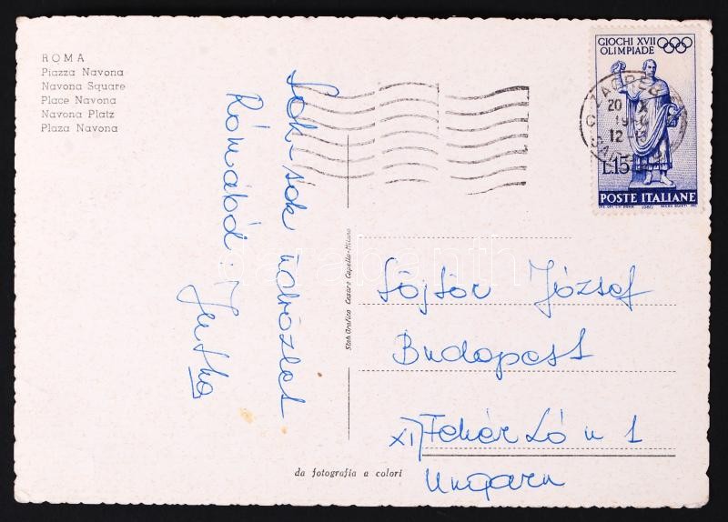 1960 Bognár Judit súlylökő saját kézzel írt képeslapja