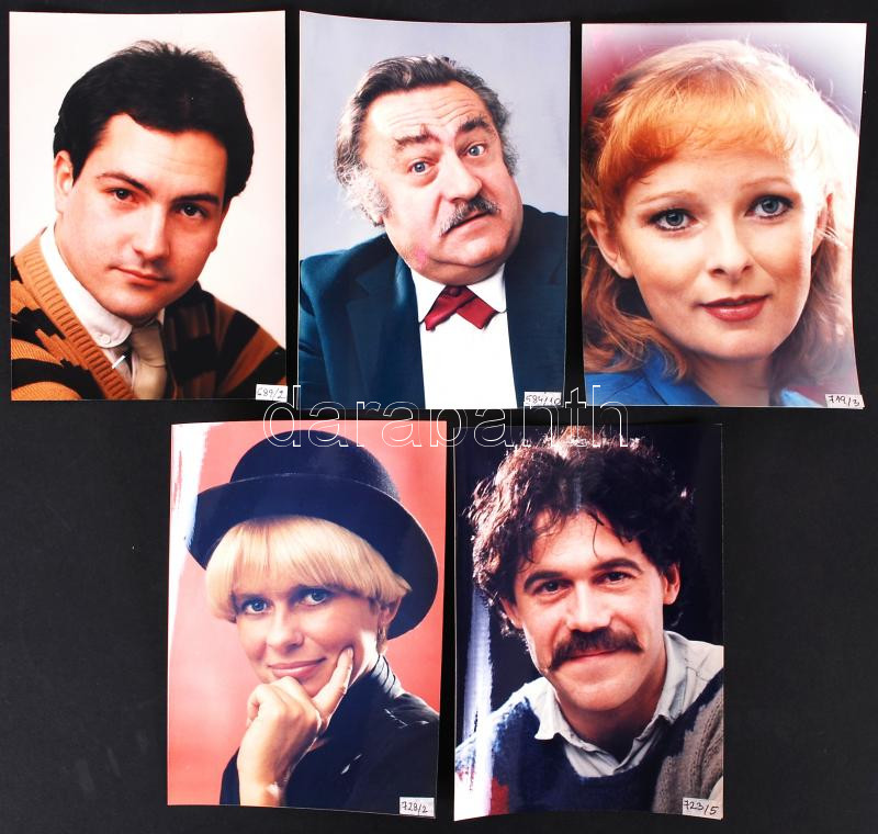 5 db 10x15 cm-es színes, a modellek által aláírt színészportré: Horváth Gyula, Nádas György, Gáspár Sándor, Kubik Anna és Esztergályos Cecília