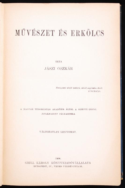https://www.darabanth.com/en/191-Online-auction/191.0/Other-collectibles/Books-Architecture-Art~600021/Jaszi-Oszkar-Muveszet-es-erkolcs-Budapest-1908-Grill-Karoly~II712040