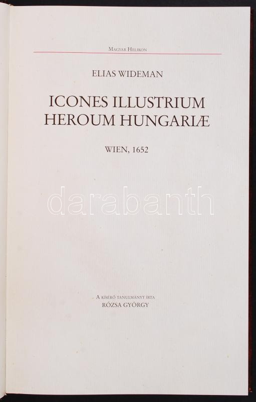 Elias Wideman: Hírneves magyarok arcképcsarnoka. Wien 1652. Reprint kiadás. Magyar Helikon.