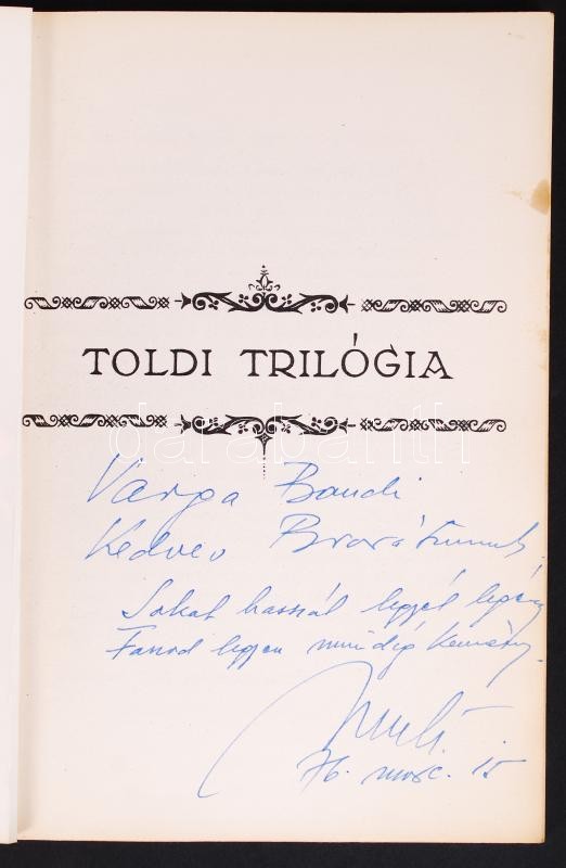 https://www.darabanth.com/en/191-Online-auction/191.0/Other-collectibles/Books-Other-rarities~600028/Dr-Gyarmati-Gyula-Toldi-trilogia-Magan-kiadas-1973-Dedikalt~II718846