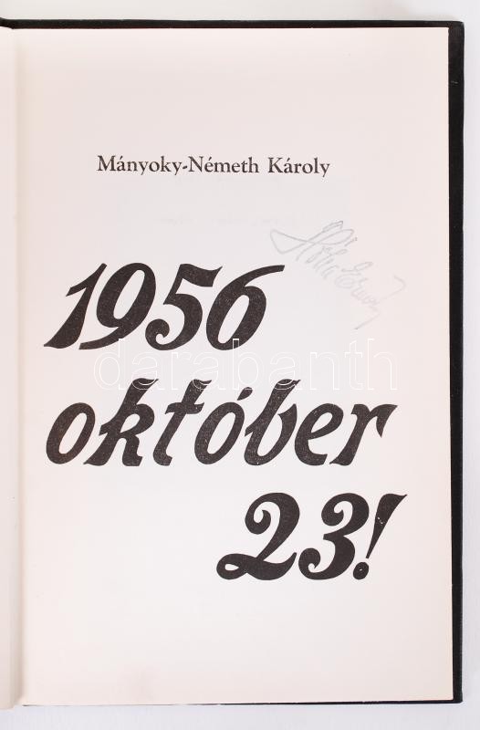 Mányoky-Németh Károly: 1956 október 23! Kiadói egészvászon kötésben, a szerző arcképével, tulajdonosi pecséttel